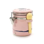 This pastel pink ceramic jar is beautifully illustrated with the rugged Welsh coastline of Llanddwyn for a stunning way to store your salt. Complete with a mini wooden salt scoop that slots neatly on the side, this makes a great gift that your friends or family can refill and reuse in their kitchen for years to come.