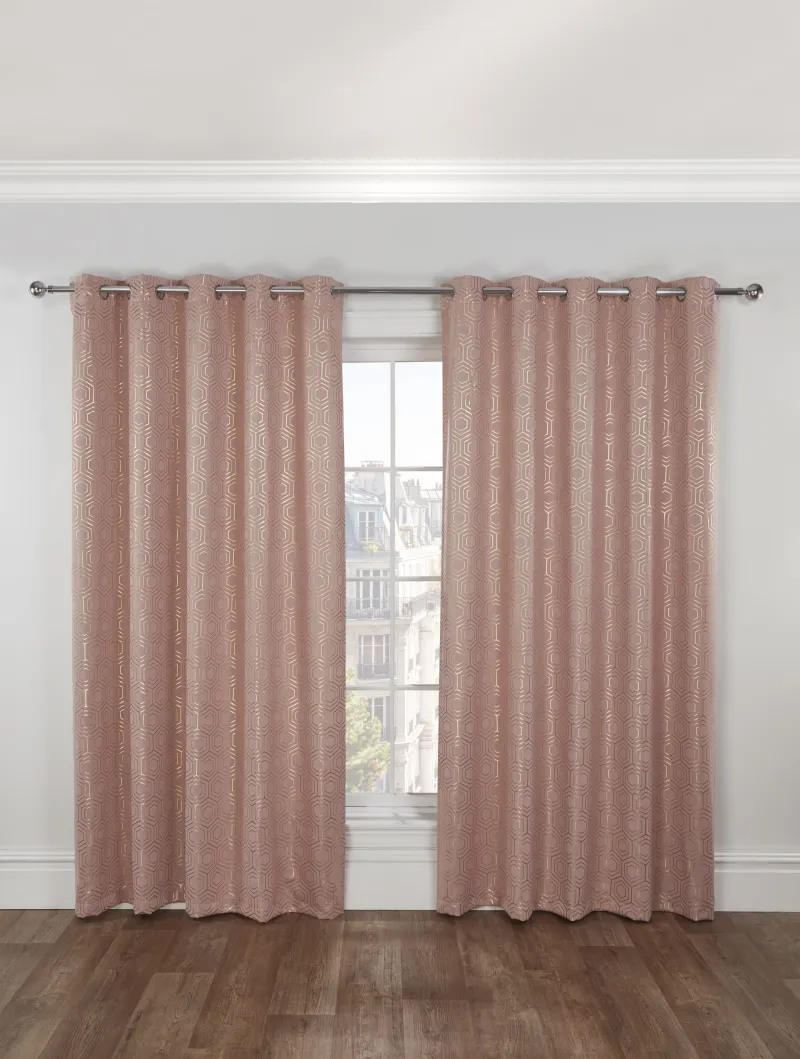 Hartford – Woven Thermal Blackout Eyelet Curtains in Blush Pink