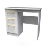 This practical 3 drawer narrow desk/vanity is perfect for any bedroom or office. A matching stool and mirror (in 2 sizes) are also available. This range is modern and elegant with a smooth clean design. Features sleek gold T-Bar handles and comes ina range of scratch resistant colours. All our furniture is made to order in the United Kingdom, to the highest quality. It is delivered within 10 working days direct to your location of choice by one of our two man delivery teams, and comes fully assembled (although legs may be removed to prevent damage in transit). Part of the Haworth Collection.