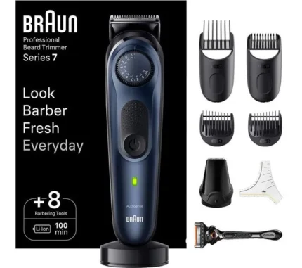 TieDex UK BRAUN Pro Beard Trimmer 7 BT7421 Wet & Dry Beard Trimmer – Black & Blue