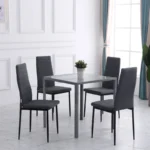 Complete your kitchen or dining area in matching style, thanks to this four-piece chair set from HOMCOM. Seats are cushioned for comfort, with high backs for support. Linen-look upholstery is smooth and in style. Steel legs for full support when seated.