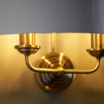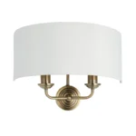 The Highclere twin wall light is a sophisticated mix of vintage white fabric shade lined with gold metallic inner and antique brass plated metalwork. This statement wall light is the perfect timeless addition to modern and classic homes of today.