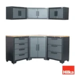 The Hilka Garage Corner 7 pce Cabinet Set is designed for durability, security, and seamless workspace organization. Constructed with a professional welded all-steel 24 gauge frame and finished with a durable powder coating, it ensures long-lasting performance in any workshop or garage.This versatile unit seamlessly complements existing Hilka storage solutions or serves as a reliable standalone workspace, making it a valuable addition to any workshop or garage.