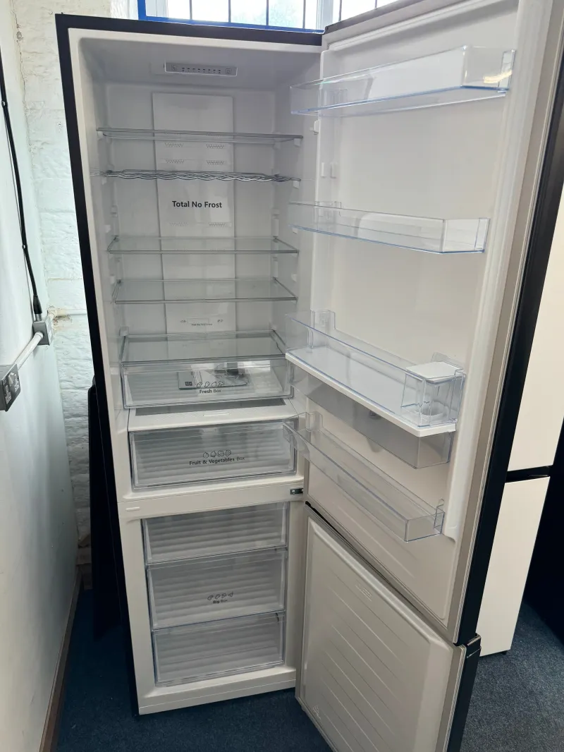 Experience superior food preservation with the Hisense RB435N4WFE fridge-freezer. Boasting a stylish black stainless steel finish, this appliance not only adds a touch of elegance to your kitchen but also offers a spacious 336-litre capacity. Equipped with Total No Frost technology, it eliminates the need for manual defrosting, ensuring your food stays fresh and free from ice build-up.