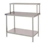 The gantry can be used to store non-perishables and dried ingredients such as salt, pepper, hers and spices that are readily available for you to grab and use during service. The main surface is designed for food preparation tasks due to the elongated table that leaves you with plenty of room. Finally, the bottom shelf is designed for storing large ingredients and packaging – such as bags of flour or rice.