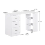 Homcom 120cm Computer Desk Writing Table Pc Workstation Study Laptop Stationery With 3 Shelf & Drawers White