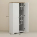 Combine elegance and functionality, this freestanding kitchen unit is ideal for organising your home efficiently and beautifully. Built from strong MDF for wearability over the years, the kitchen dresser features 4 shelves for plenty of storage space. On the bottom sits an elevated base to protect it from damp and damage. So, whether it’s for storing food in your pantry, keeping files in check in your office or simply for organising clothes in your bedroom, this is the cabinet to have.