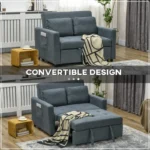 HOMCOM 2 Seater Sofa Bed Convertible Bed Settee with Cushions, Pockets, Grey