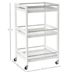 HOMCOM 3-Tier Home Trolley Kitchen Storage Cart w/ Steel Bars 4 Universal Wheels Rolling Unit Organiser Living Room White