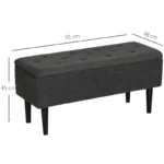 Storage, with a seat to rest on occasionally – this HOMCOM ottoman is a handy double-duty piece for the bedroom, hallway, office and more. Open the lid to reveal a 85 x 28cm space, great for small furnishings. Four wooden legs for support when loaded and when you’re seated. A simple and stylish design, this end of bed storage bench works well with your current furniture.