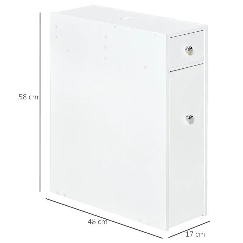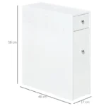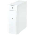 HOMCOM Bathroom Slim Floor Cabinet Narrow Wooden Storage Home Bath Toilet Cupboard Organiser Unit with Drawers White