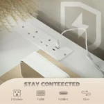 • Two power outlets, a USB, a USB-C port charge devices conveniently, with a 1.5-m power cord