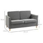 Compact 2 Seater Loveseat Sofa with Wooden Frame for Bedroom or Lounge, Grey