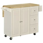 Organize your kitchenware, dinnerware, and other utensils with this kitchen island cart. Including a large cabinet, three drawers, this kitchen island offers you lots of storage space and helps you keep everything organized. Four wheels make the movement easier. This kitchen island comes with a drop-leaf which offers your extra space, suitable for dining and drinking. Take the hassle out of running around when this Homcom kitchen island cart has everything you need in place.