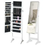 Keep all your jewellery safe, organised and easily accessible with this mirror jewellery cabinet from HOMCOM. On the outside, a full-length mirror is fitted for you to get easy, and can be adjusted to suit you. Inside features 114 earring slots, 18 necklace and bracelet hooks, 98 ring slots, fives shelves and a small bag so you can everything you need in a place. The inside can be locked for security when you’re not around. The jewellery armoire will help you get ready all in a spot.