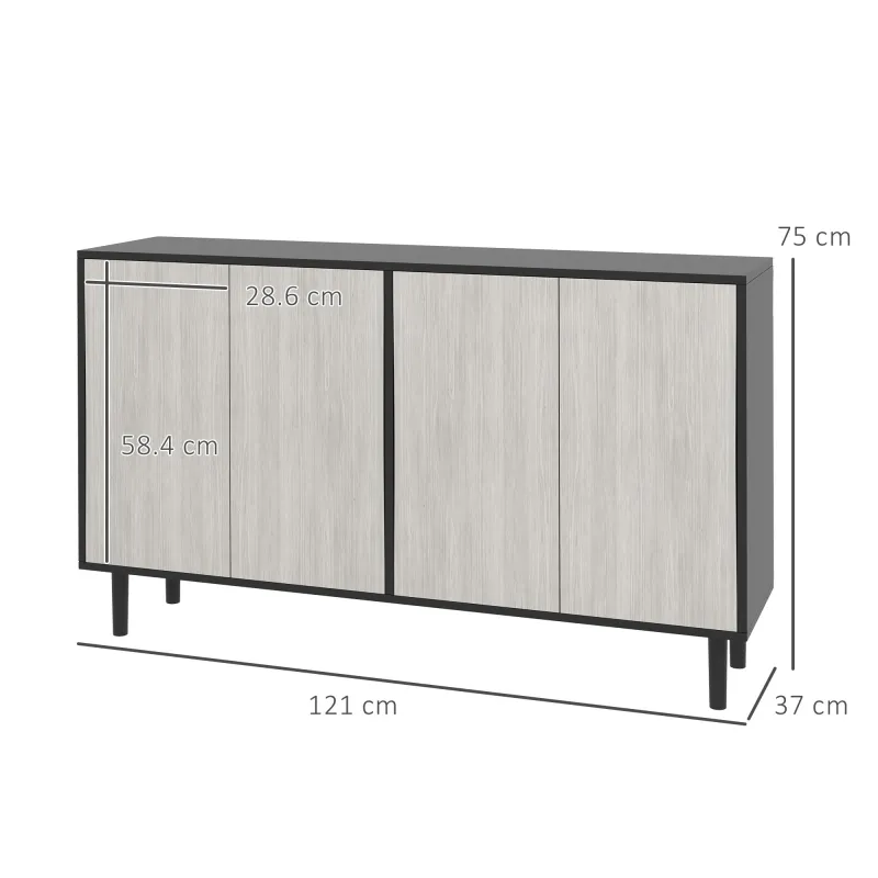 Your home staple, made stylish. Not just a piece to love looking at, but this HOMCOM storage sideboard keeps your home tidy. Four doors open to reveal a middle shelf in the two compartments, creating four individual areas; great for organising crockery, boxes and more. The flat table top is ideal for your favourite pieces, in full display. Show off photos, trinkets and more. The push-open doors are a handy finishing touch.