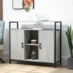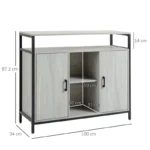 HOMCOM Modern Sideboard, Steel Frame Storage Cabinet with 2 Doors and Adjustable Shelves for Living Room, Hallway, Light Grey