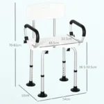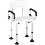 HOMCOM Shower Chair for the Elderly and Disabled, Height Adjustable Shower Stool with Back and Flipped Padded Arms, Suction Foot Pads, White