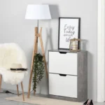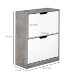 HOMCOM Two Drawer Shoe Cabinet Home Storage Organiser w/ Groove Handles Adjustable Shelves Modern Boxy Rack Hallway Bedroom Furniture