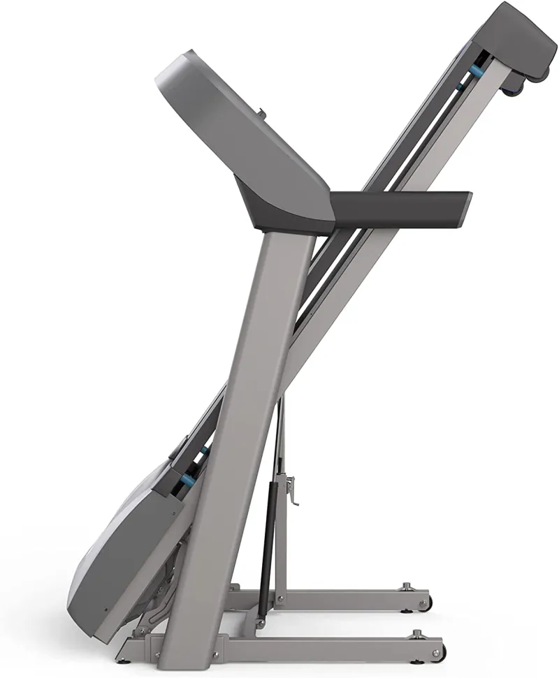 There are many added features which are integrated into this running machine, such as the controls which allow you to adjust your speed from 0.8-18 kph. The touch keys allow you to monitor your ascent or descent on the treadmill from 0-10%. The Horizon Fitness T101 folds up and out of the way when you’re done with your workout, making this perfect for you home.