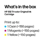 • Original HP 302 Ink Cartridges deliver legendary HP print quality.