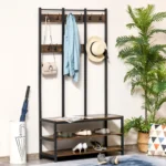 Keep your coats, outerwear, bags and shoes well organized with our industrial hall tree shoe bench from HOMCOM. This garment rack with 12 hooks for hanging your coat and 3-tier shoe stool for placing shoes or offering seat when changing your shoes. Crafted from particle board with metal frame, it is durable in use. Equipped with anti-toppling device, it will be stable and safe. Buy it and you’ll never misplace anything again!