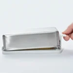 The dish consists of a resin tray and a lid made from durable stainless steel. It’s easy to clean and won’t rust or stain over time. Steel provides excellent insulation, keeping your butter fresh and cool. It also protects it from any odours in your fridge.