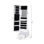 Infuse elegance and easy organisation into your everyday routine with this mirrored jewellery cabinet from HOMCOM. Its freestanding design combines a long and adjustable-angle full-length mirro. It is here where there is a significant amount of space for storing all your jewellery, make-up, perfumes.