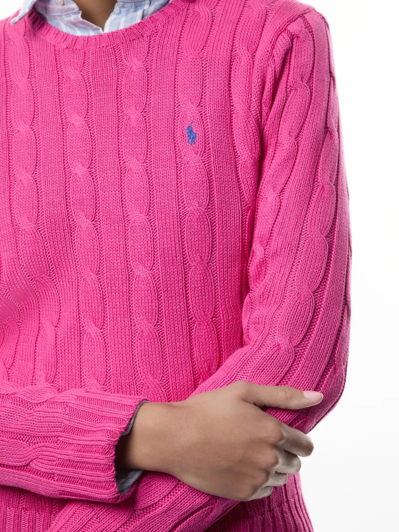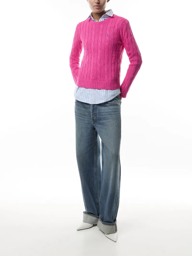 A Polo essential, this slim-fitting crewneck jumper is made with breathable cotton and showcases our signature cable-knit construction.