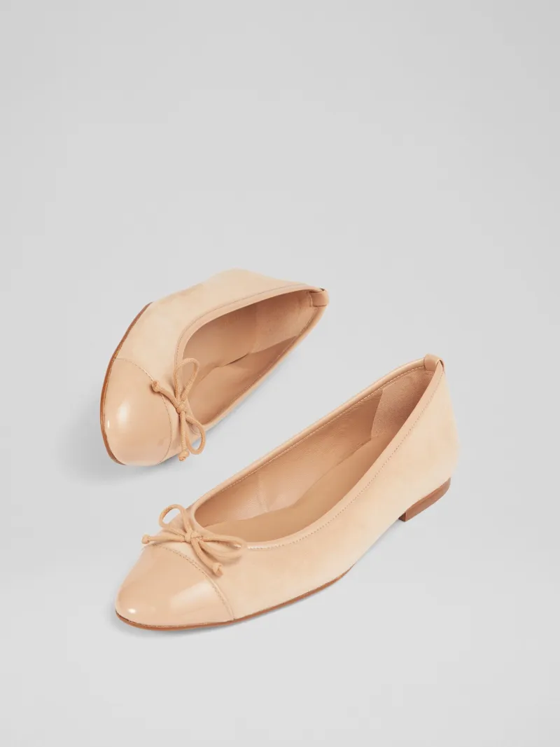 Kara Beige Suede And Patent Toe Cap Ballerina Flats
