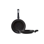 Introducing Black Gold Biogranite Pan Set in a beautiful black gold hue, a kitchen essential designed to simplify your cooking experience. This comprehensive cookware collection includes a shallow frying pan and a frying pan, providing versatile options for your culinary creations.