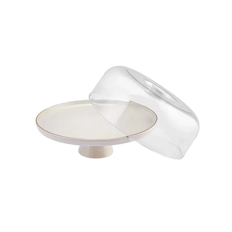 Karaca Calvin Ceramic Cake Stand, 23cm, White Gold