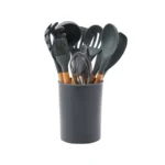 Karaca Darcy 11 Piece Kitchen Utensil Set with Utensil Holder, Grey Wood