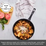 The gastro pan, with its non-stick interior coating and stainless steel exterior, is both healthy and durable. Its rust-resistant design promises long-lasting use. The non-stick interior ensures healthy cooking. The lid and handles are heat-resistant. For the longevity of the non-stick feature, hand washing is recommended.
