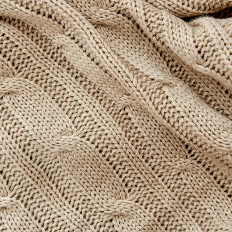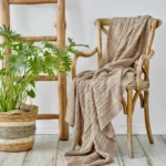 Home TEXTILE > TEK BATTANİYE Karaca Home Cable Knit Throw, 130cmx170cm, Dark Beige