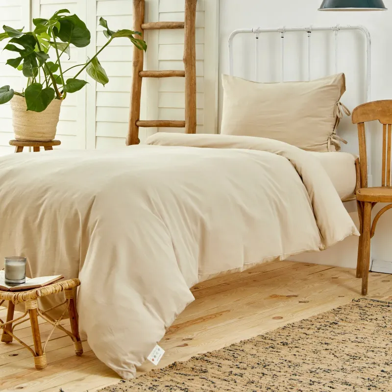 Home TEXTILE > NEVRESİM TAKIMI Karaca Home Tidal Foam %100 Turkish Cotton Duvet Cover Set, Single, Beige
