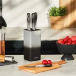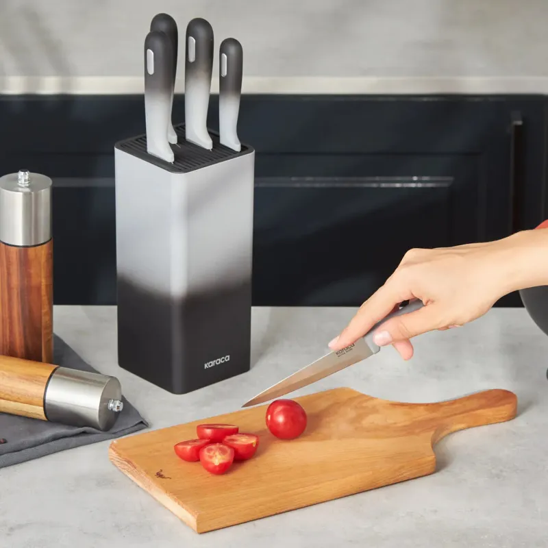 Karaca Moonlight 5 Piece Square Knife Block Set, Black Grey