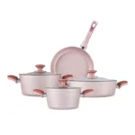 The Rosegold 7-Piece Pot Set distributes heat evenly, enhancing the flavor of your food. Its granite coating is extremely non-stick and resistant to burning, and its stain-resistant feature makes it easy to clean.