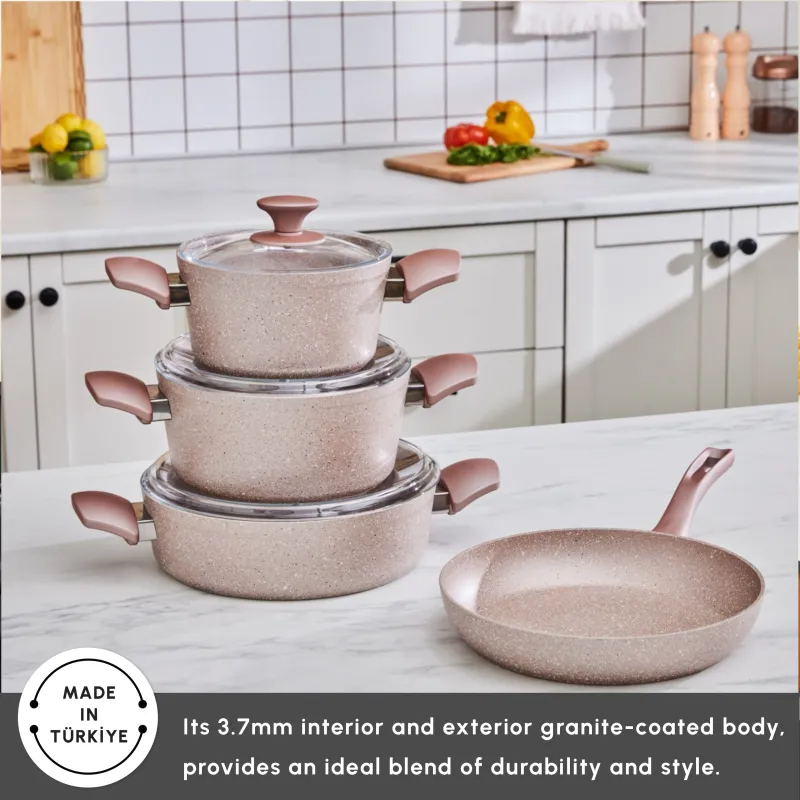 Karaca Rosegold Biogranite 7-Piece Induction Cookware Set, Rose Gold