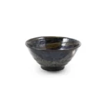 “Karasuba-iro” means glossy black in Japanese, and this glazed ceramic rice bowl has a beautiful glossy black and grey speckled surface. Additional red-brown detailing and white sweeps add to the elegance of the design.