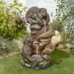 The cheeky otters beautifully frame the flowing water which creates small pools that when illuminated with the integral LED lights create a stunning feature. A hand-painted and detailed finish enhances the realistic appearance of this water feature whilst remaining sturdy thanks to its durable resin structure.