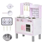 Bring out the hidden cook in your little girl or boy with this pretend play set from HOMCOM. This set includes the kitchen stand, pans, pots and utensils – giving them lots to work with and keep themselves entertained. It helps them use their imagination and develop their creativity and hand-eye coordination skills. The stove sound effects make it more realistic and adds extra fun whilst they play. With storage space located in the ‘oven’, they are able to keep everything stored and safely together. Perfect for playing by themselves, with friends or even spending some time with you.