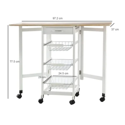 HOMCOM Drop-Leaf Kitchen Cart Trolley w/ 3 Baskets Drawer Surface Top 6 Universal Wheels Rolling Storage Unit Kitchen Home Dining Island White Oak Tone