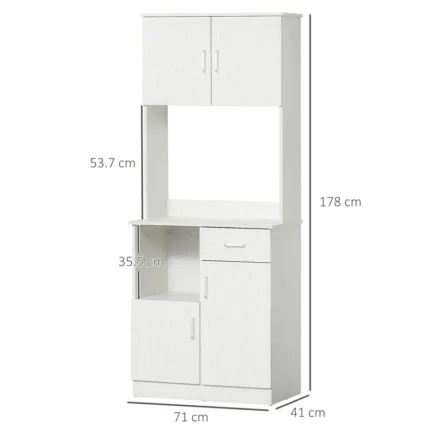 HOMCOM Freestanding Kitchen Cupboard, Modern Kitchen Storage Cabinet with Doors, Microwave Counter and Adjustable Shelves, White