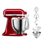 KitchenAid presents the 185 Artisan Tilt-Head Stand Mixer in Candy Apple, ideal for all your baking needs. This mixer enables you to create a wide variety of recipes with endless possibilities. It features a multipurpose attachment hub, a direct drive motor, and a sturdy metal body finished in a stylish candy apple red. This stand mixer is a perfect addition to any baker’s kitchen!