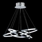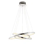 An impressive LED ceiling pendant from which 3 LED circles hang. Finished in chrome and with an adjustable drop of up to 1250mm. Low maintenance costs and energy efficient. Also available in a smaller 2 circle version