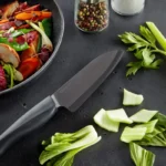 A Santoku knife is a superb addition to any knife set. it’s suitable for preparing meat, fish or vegetables. The deep blade and gently curved edge mean that many people find it easier to handle than a traditional chef’s knife. The depth of the blade gives the knife the power to cut root vegetables with ease while the rounded point is ideal for fine dicing. The rectangular shape makes it easy to scoop up your chopped ingredients and transfer them to the pan.
