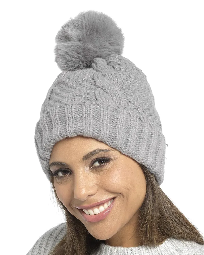 Fantastic for the style conscious is this ladies bobble hat. Featuring a cable knit design with a cute large bobble. With a fleece lining you’ll be able to keep warm whilst looking great!