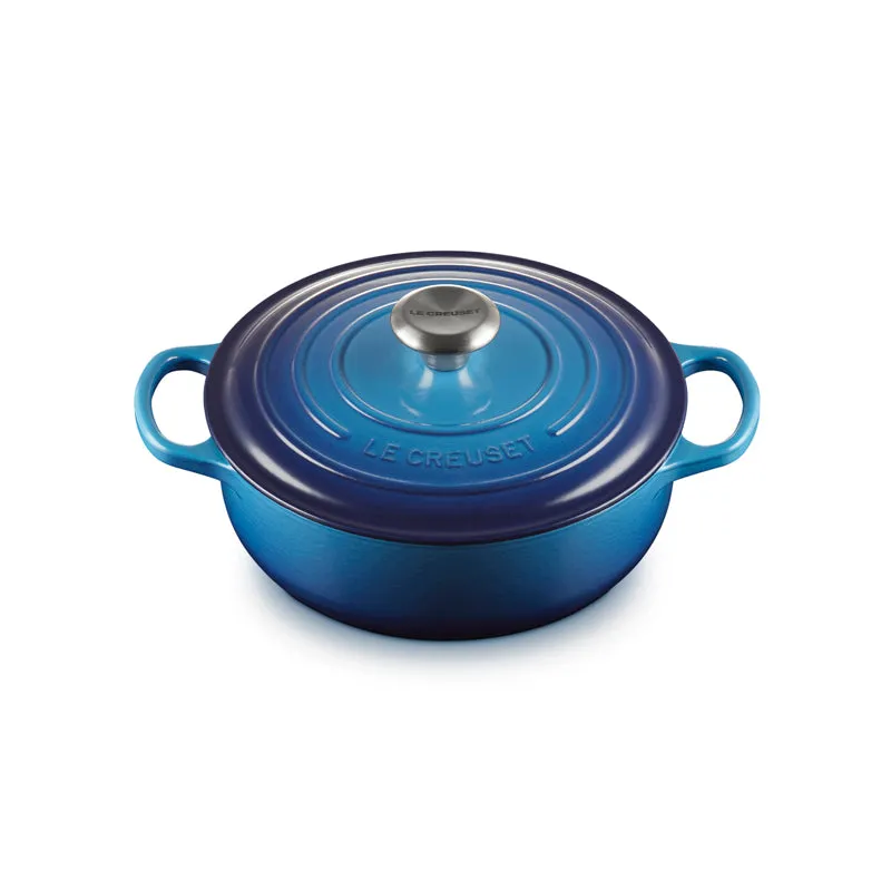 From creamy risottos to a tasty bouillabaisse, the Le Creuset Cast Iron Signature Shallow Casserole Sauteuse 24cm is perfect for all your everyday cooking tasks. Although designed with more sloping sides than the Le Creuset Signature Cast Iron Casseroles, it has straighter sides than the Le Creuset Signature Cast Iron Shallow Casserole. This gives a greater volume, additionally the wider base adds versatility to this casserole making it ideal for searing, sauteing, braising and frying.