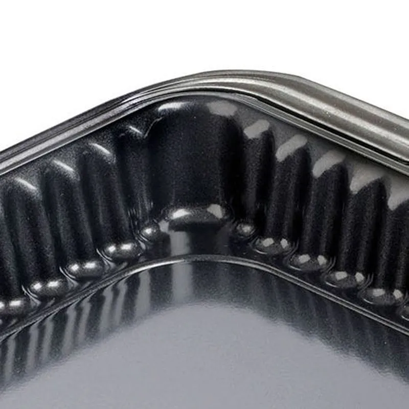 The Square Tart Tin has a fluted edge and a removable base which makes removing and serving pastry-based tarts, flans and quiches easy and minimises the risk of the pastry case breaking. Ideal for sweet and savoury recipes, the excellent heat-spread quality of this tin means your pastry will cook to perfection. Le Creuset Toughened Non-Stick Bakeware bakes evenly and gently and our ultimate non-stick coating ensures excellent food release and effortless turning out. The wide rim on the outside of the tin, featuring heat-resistant silicone inserts for added grip, makes lifting a full tin easier and safer, especially when taking to and from a hot oven. Covered by a lifetime guarantee. Metal utensil safe – see Care and Use Instructions for details.